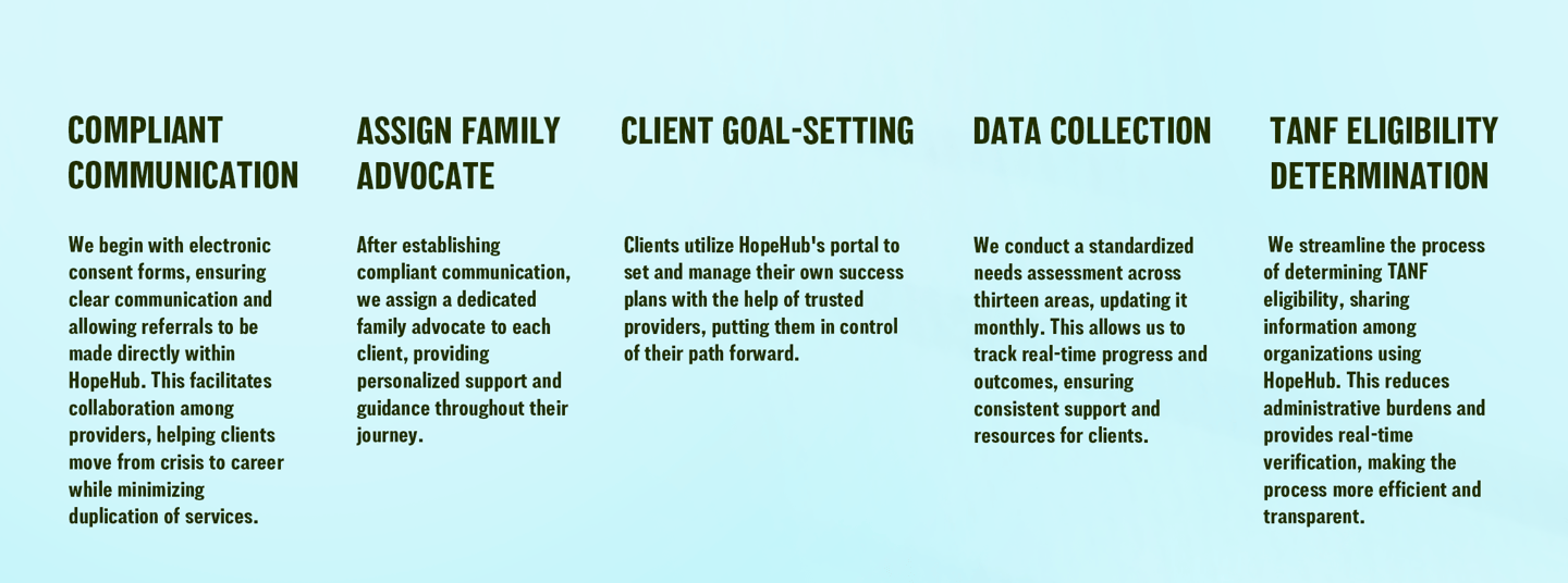 We achieve this through our Crisis to Career model and collaborative case management system, fostering effective partnerships among agencies, community service providers, and faith-based organizations to deliver significantly improved outcomes for communities.